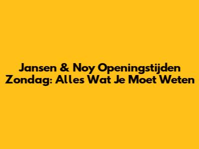 Jansen & Noy: Zondag Openingstijden & Shopping Tips