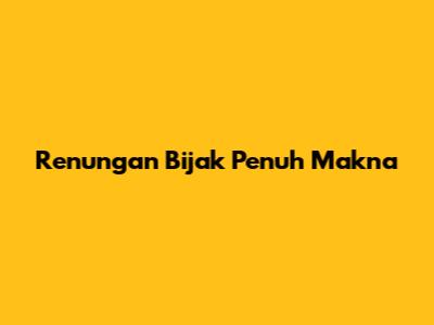 Renungan Bijak Penuh Makna