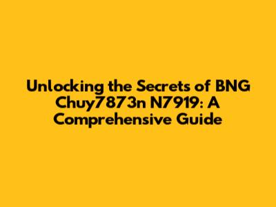 Unlocking The Secrets Of BNG Chuy7873n N7919: A Comprehensive Guide